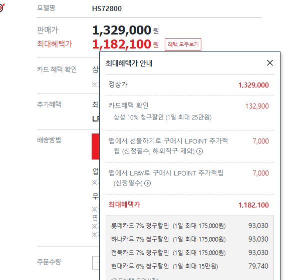 최대 혜택가 1182100원