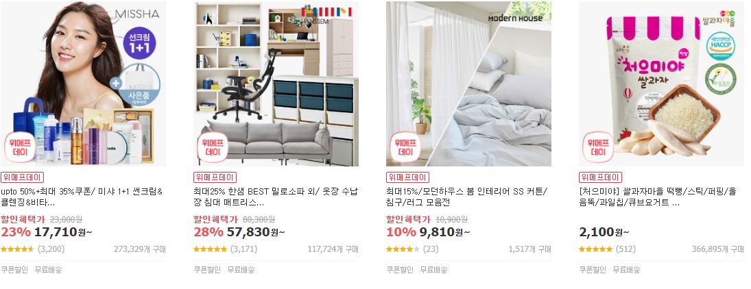 위메프 사이트에서 할인 이벤트를 진행하네요.