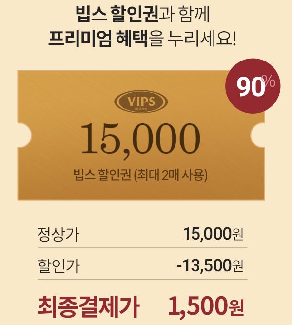 빕스 15,000원 할인권 90% 할인 정보 포스팅입니다.