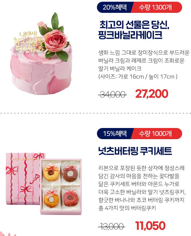 할인 품목 : 베리굿 롤케익, 넛츠버터링 쿠키세트 등