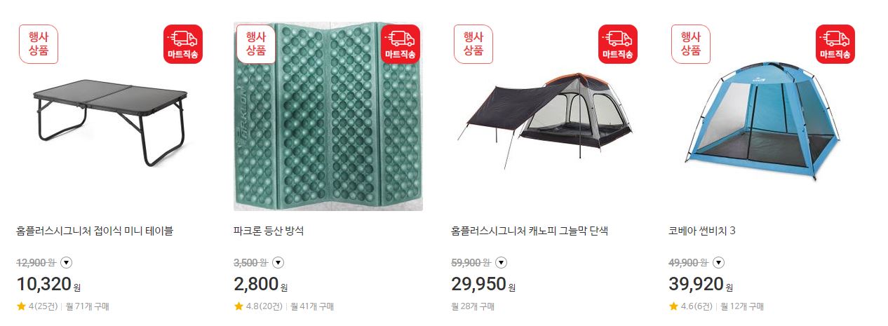 홈플러스 사이트에서 캠핑용품 할인 이벤트를 진행하네요.
