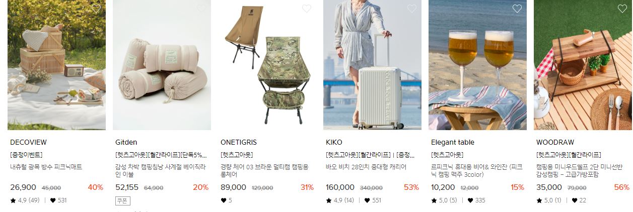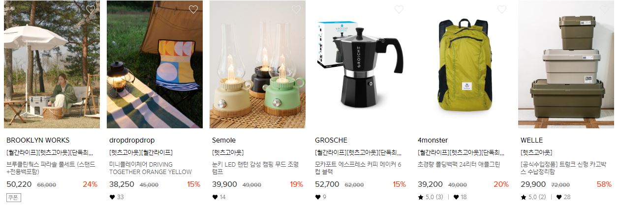 할인 품목 : 의류, 신발, 캠핑용품 등