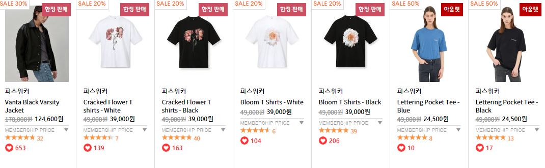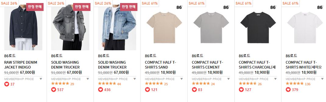 이벤트 브랜드 : 메종 미네드, 피스워커, 애드오프, 86로드, 마틴플랜, 가먼트레이블, 반프