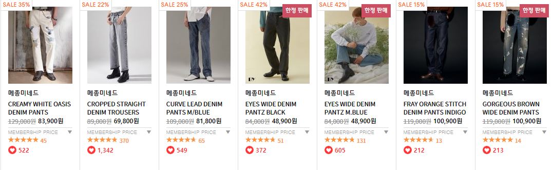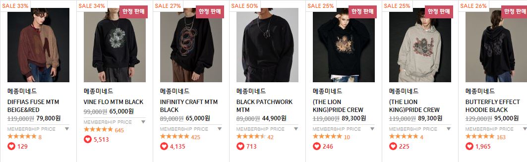 이벤트 브랜드 : 메종 미네드, 피스워커, 애드오프, 86로드, 마틴플랜, 가먼트레이블, 반프