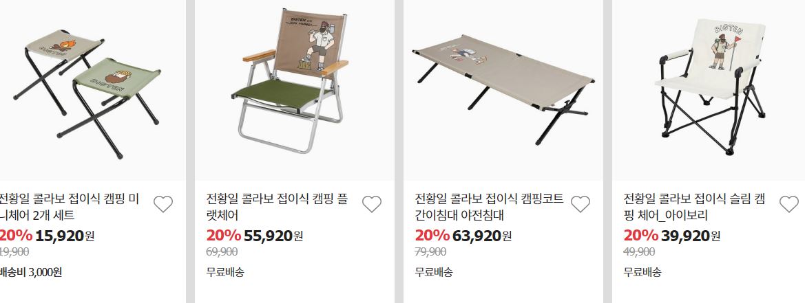 할인 품목 : 아이스박스, 텐트, 의자 등