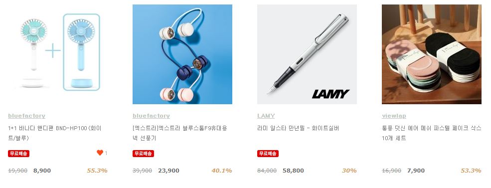 할인 품목 : 휴대폰 거치대, 블루투스 스피커 등