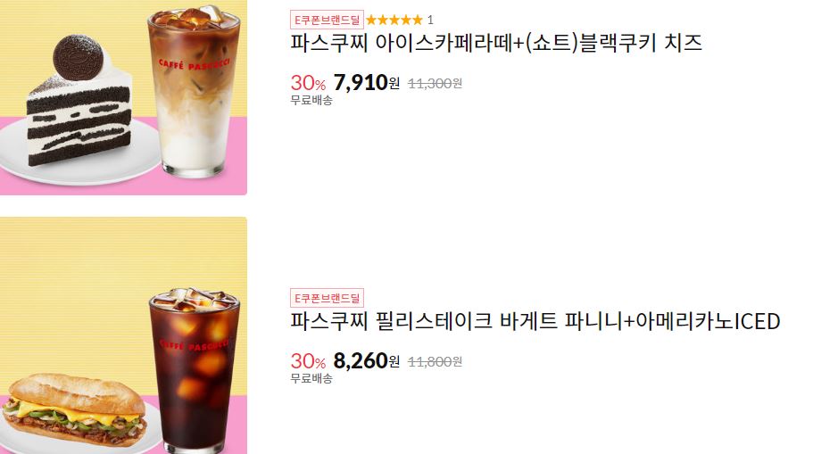 할인 브랜드 : 엔제리너스, 파스쿠찌 등