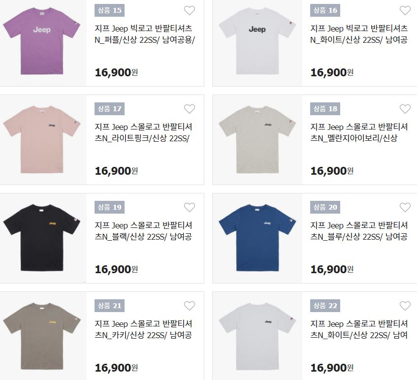Jeep 22 S/S 반팔티 균일가전 정보 포스팅입니다.