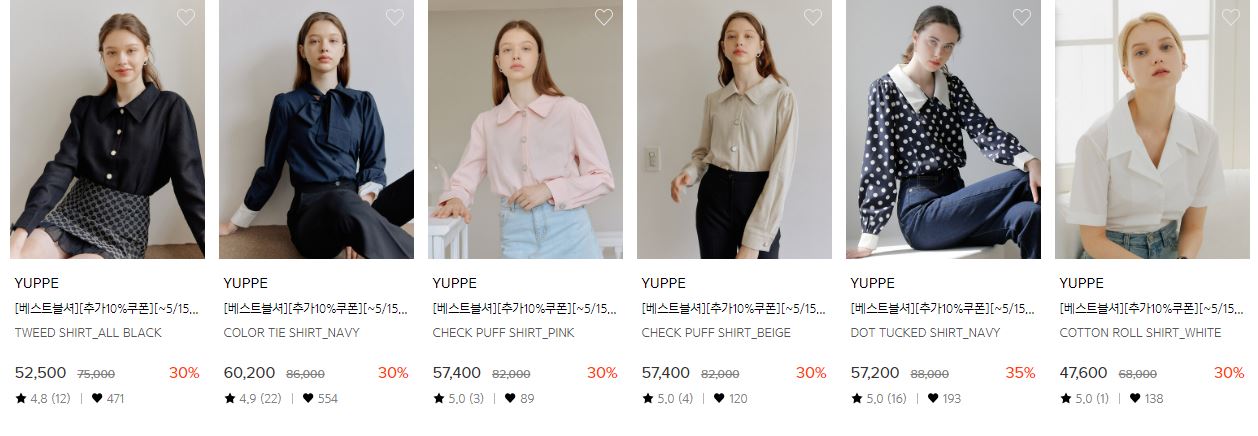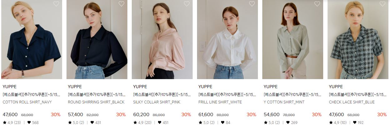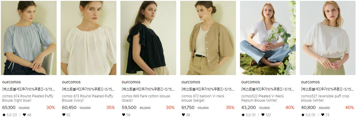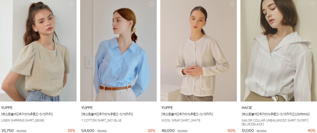 할인 품목 : 블라우스, 셔츠