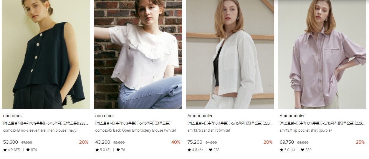 할인 품목 : 블라우스, 셔츠