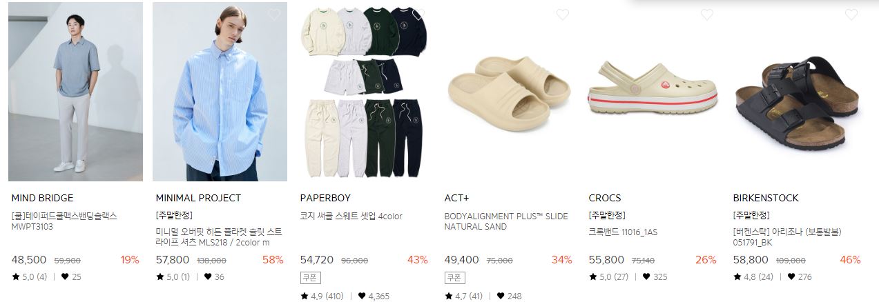 할인 품목 : 티셔츠, 모자, 샌들 등