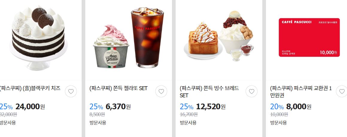 할인 브랜드 : 파리바게뜨, 파스쿠찌 등