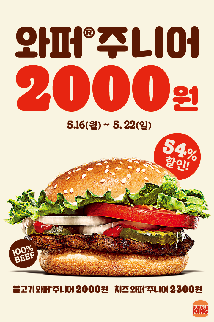 할인 메뉴 : 와퍼주니어, 불고기와퍼주니어, 치즈와퍼주니어