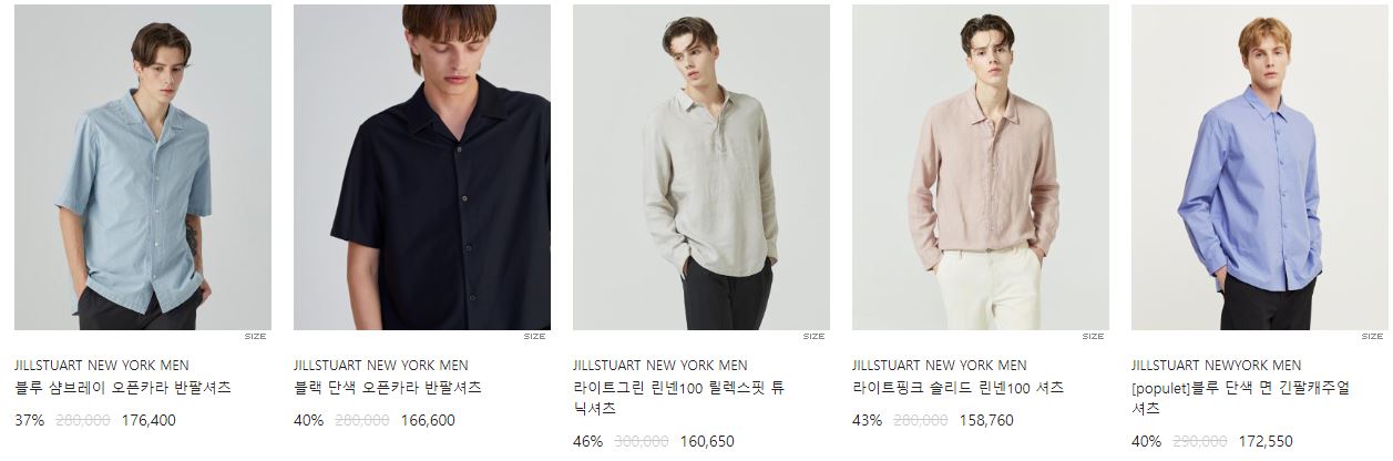 할인 품목 : 티셔츠, 팬츠, 셔츠 등