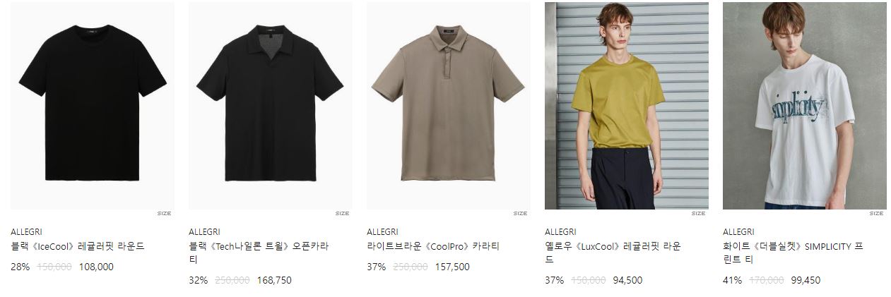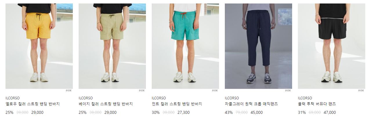할인 품목 : 티셔츠, 팬츠, 셔츠 등