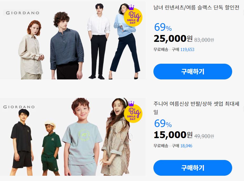 지오다노 최대 70% 세일 정보 [링크]