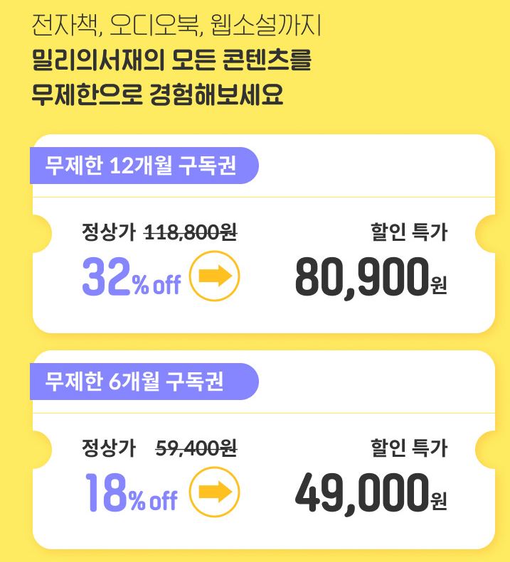 밀리의 서재 구독권 최대 32% 할인 정보 포스팅입니다.