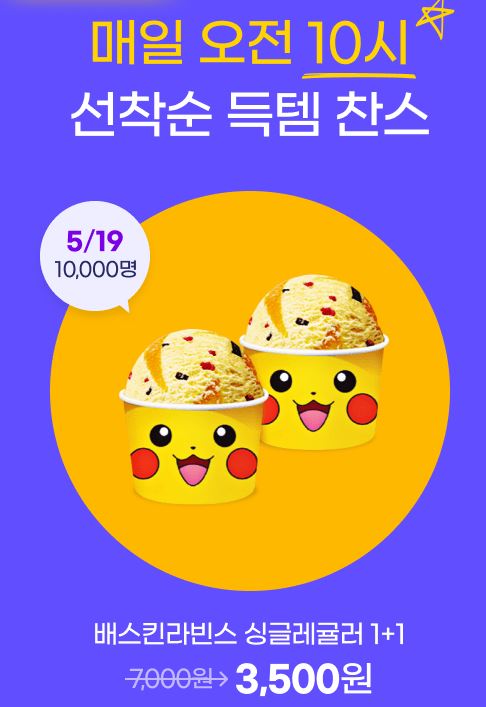 배스킨라빈스 싱글레귤러를 1+1 판매하네요.