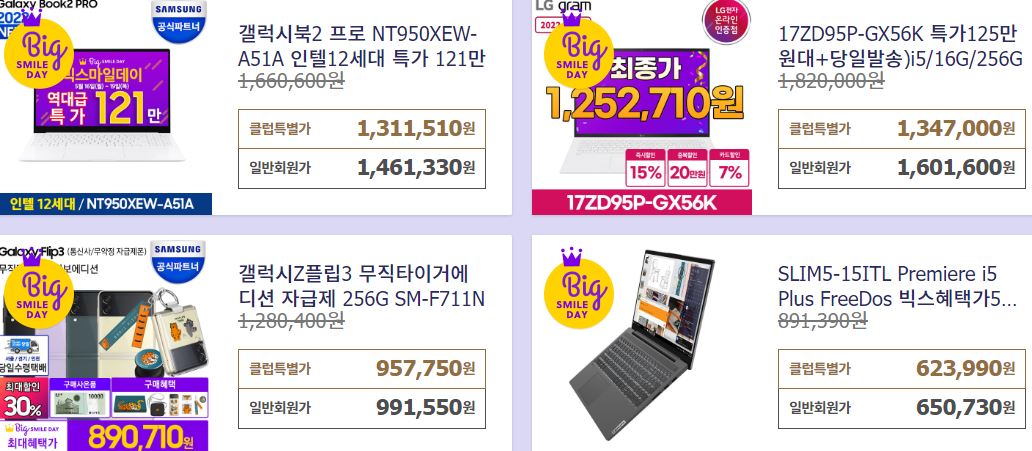 할인 품목 : 사운드바, 휴대폰, 화장품 등