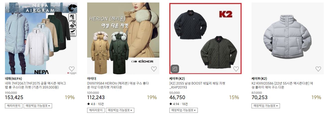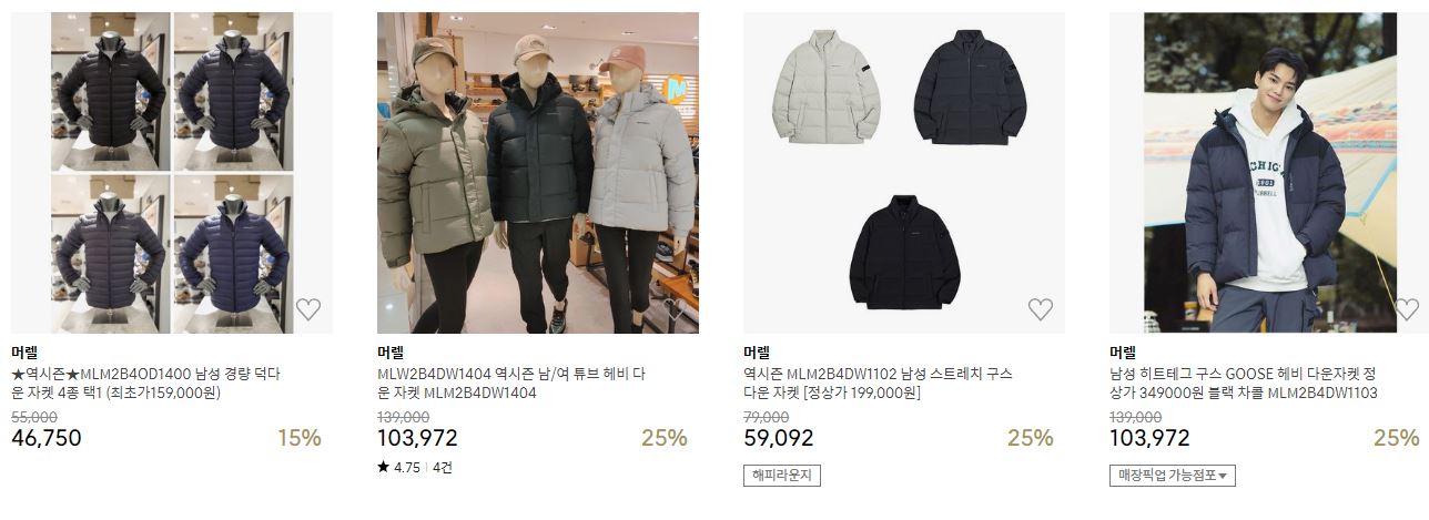 할인 품목 : 점퍼, 티셔츠, 팬츠 등