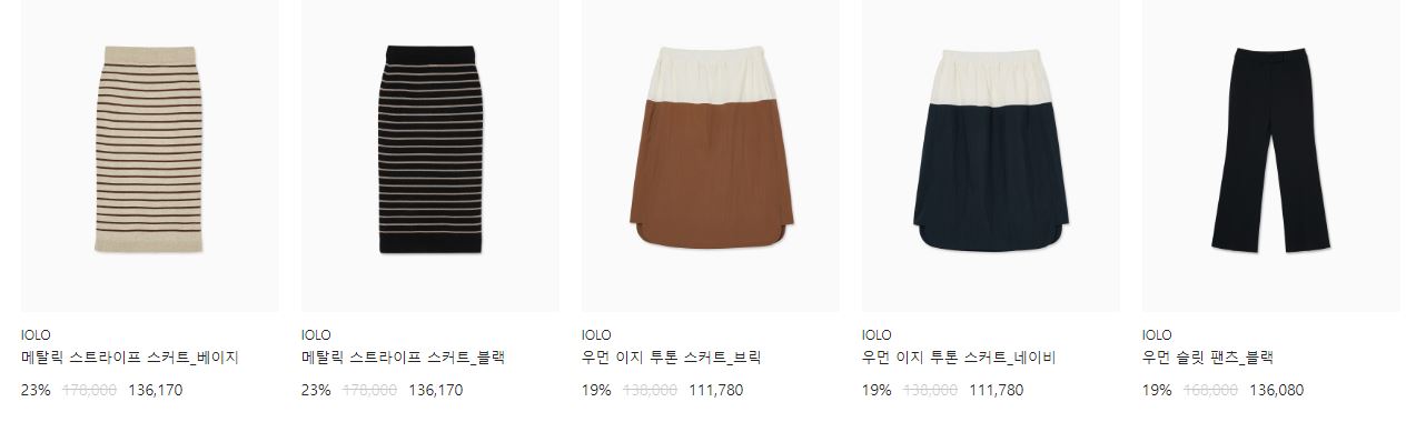 할인 품목 : 셔츠, 티셔츠, 팬츠 등