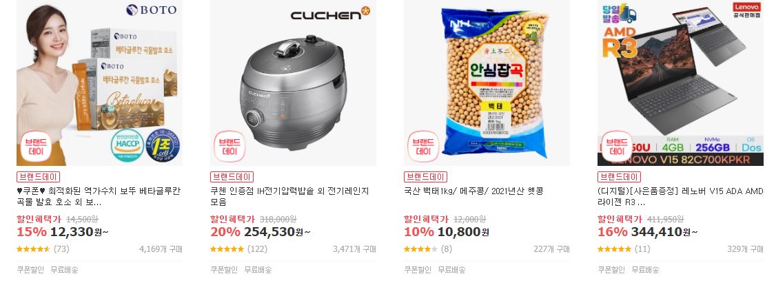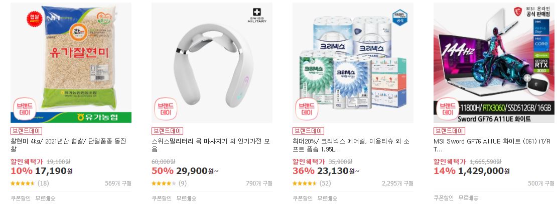 할인 품목 : 가전, 식품, 화장품 등