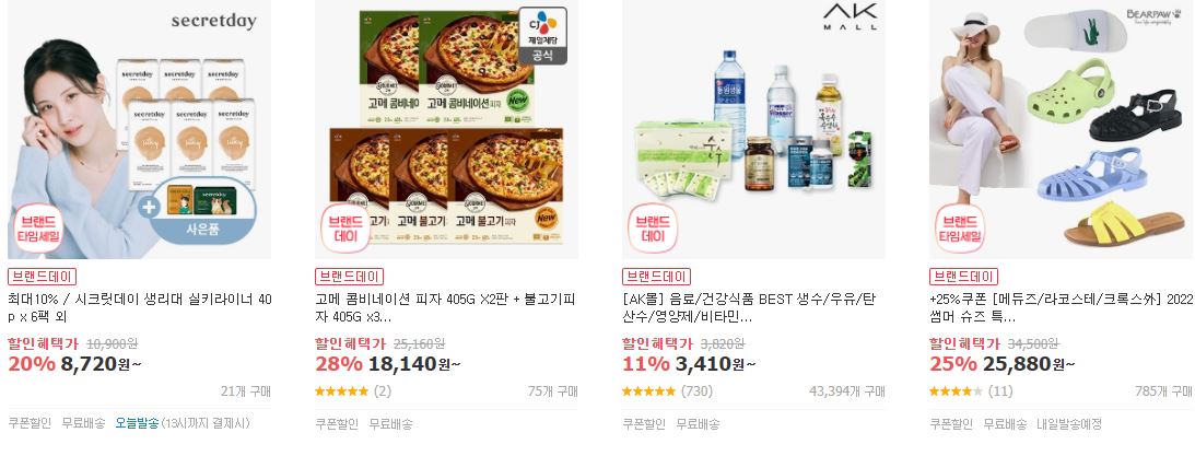 할인 품목 : 가전, 식품, 화장품 등