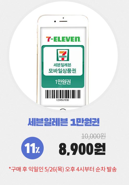 세븐일레븐 1만원권 11% 할인 정보 [링크]