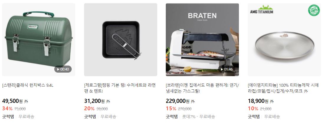 할인 품목 : 의류, 가전, 캠핑용품 등