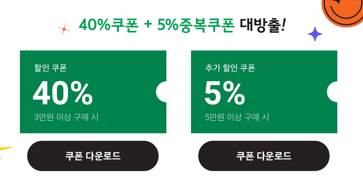 3만원 이상 구매시 40% 할인쿠폰