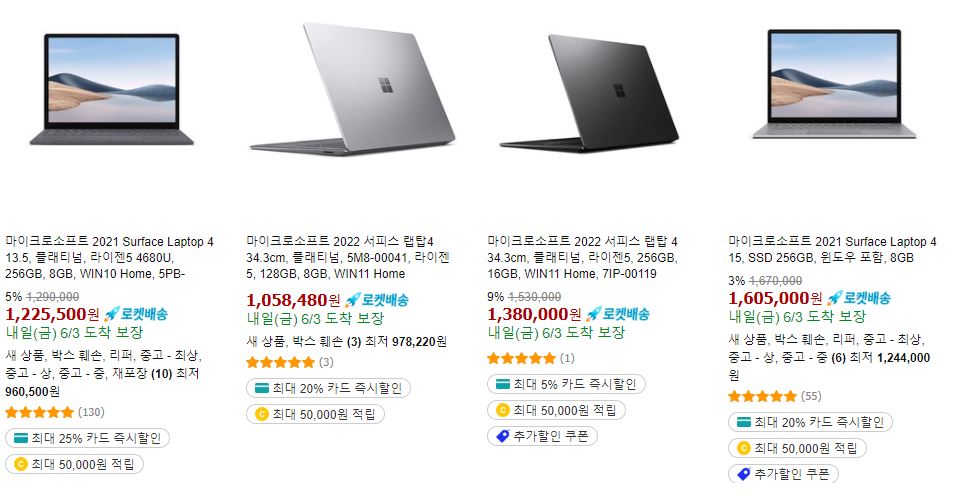 할인 품목 : 서피스 프로 8, 서피스 랩탑 4 등
