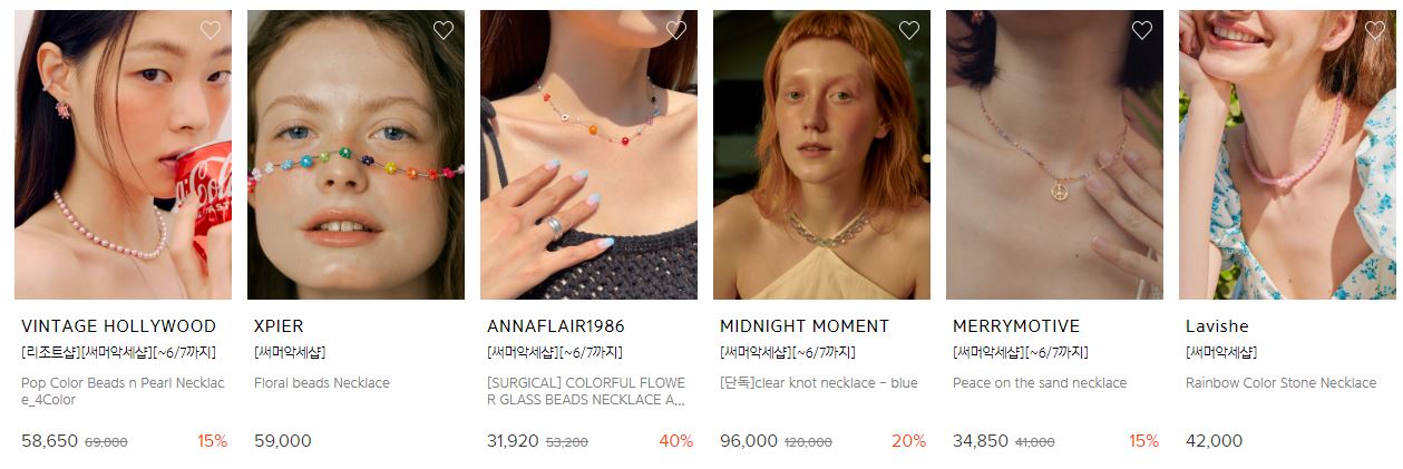 할인 품목 : 모자, 목걸이, 팔찌 등