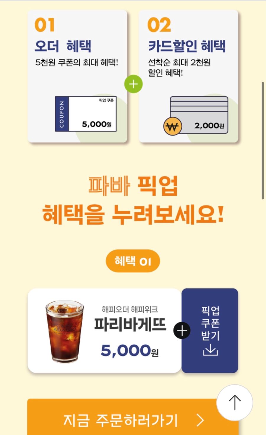 파리바게뜨 해피위크 픽업 최대 7천원 할인 정보 포스팅입니다.