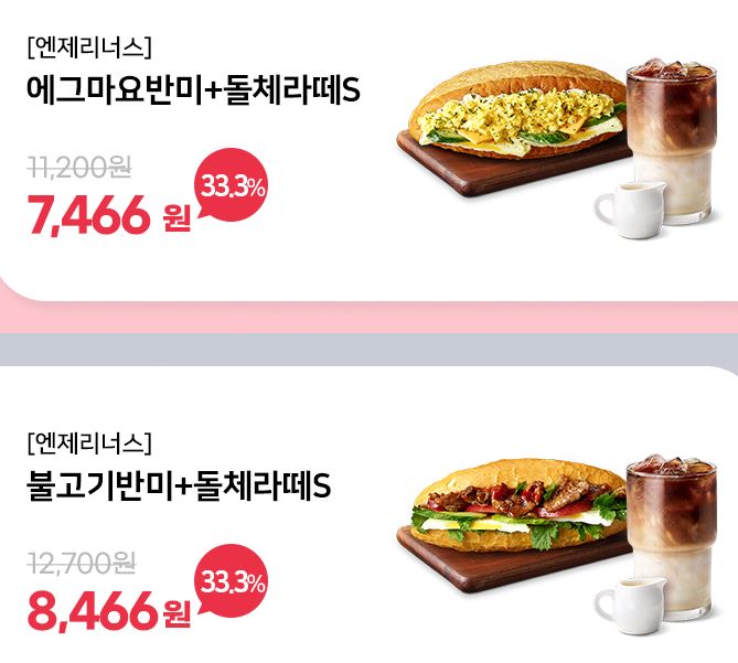 엔제리너스 다양한 메뉴를 할인 판매하네요.