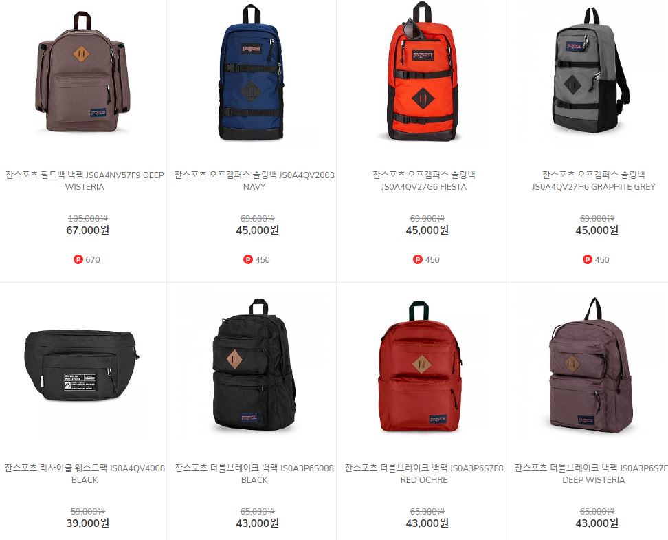 잔스포츠 다양한 제품을 할인 판매하네요.
