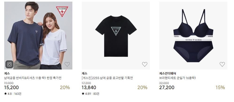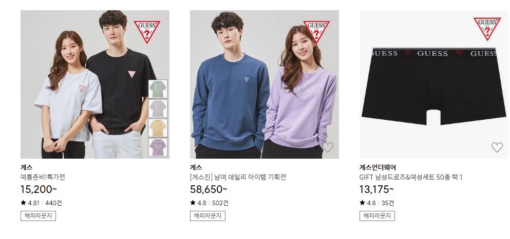 할인 품목 : 티셔츠, 팬츠, 속옷 등