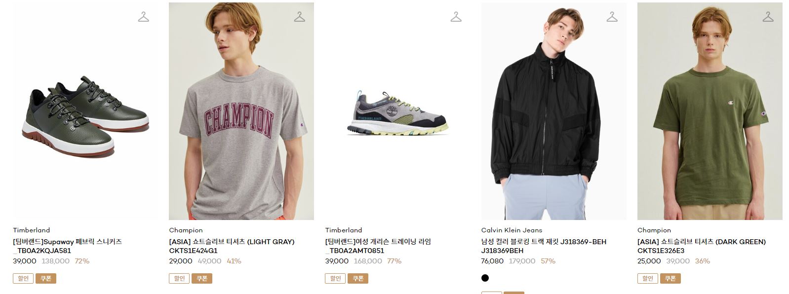 할인 품목 : 티셔츠, 팬츠, 운동화 등