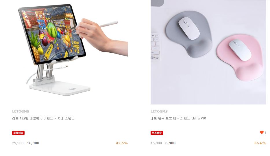 할인 품목 : 스탠드, 모자, 선풍기, 노트 등