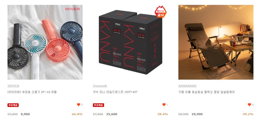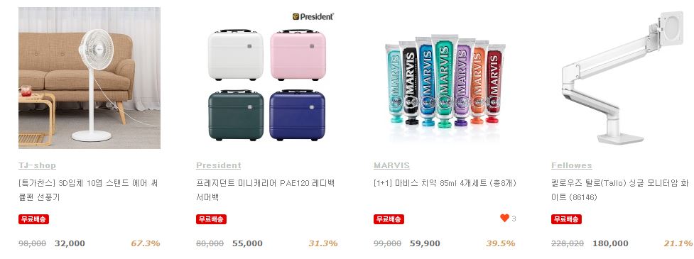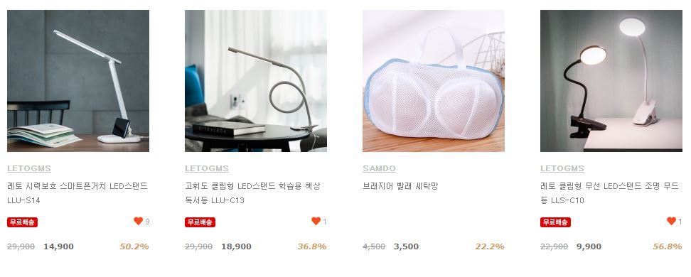 할인 품목 : 스탠드, 모자, 선풍기, 노트 등