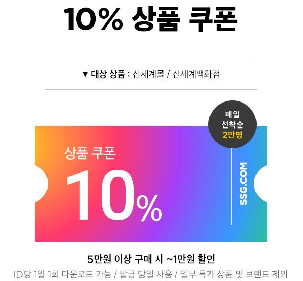 10% 쿠폰 매일 선착순 2만명.