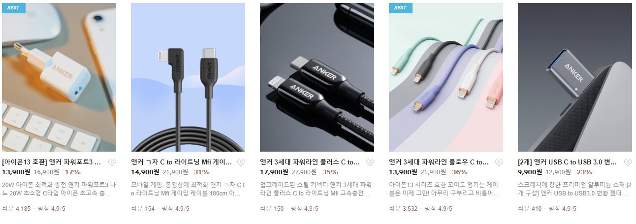 앤커 다양한 제품을 할인 판매하네요.