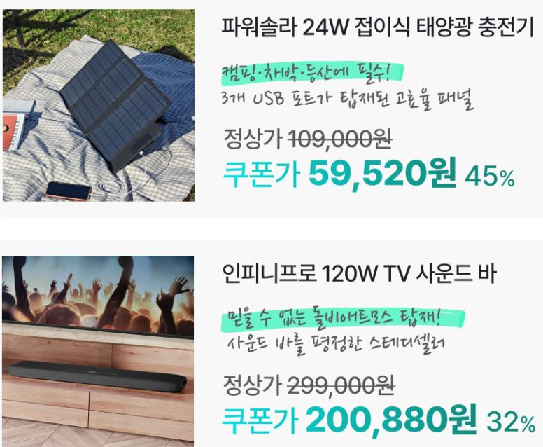 할인 품목 : 충전기, 사운드바 등