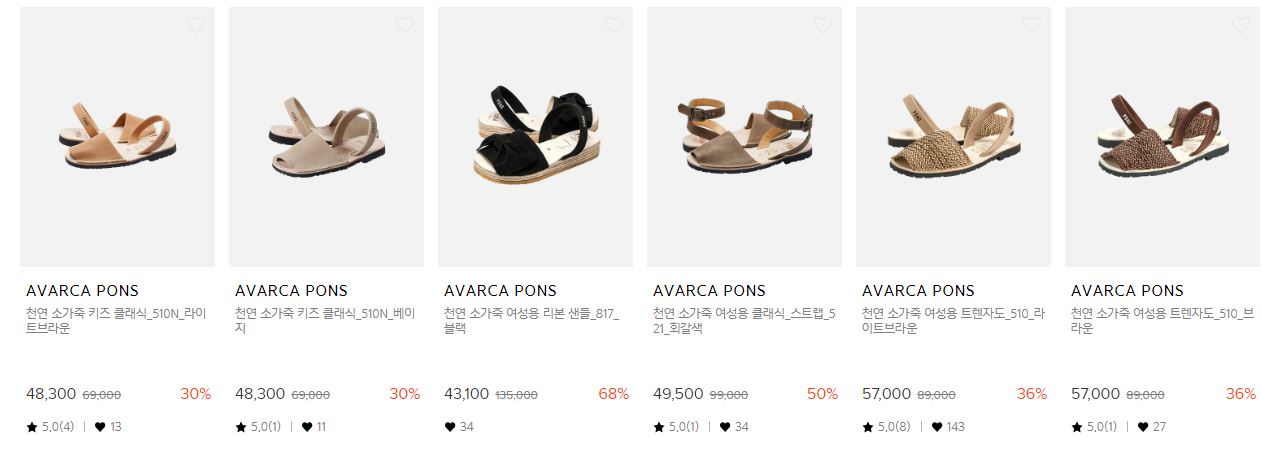 할인 품목 : 샌들, 슬리퍼, 레인부츠 등