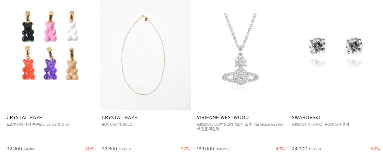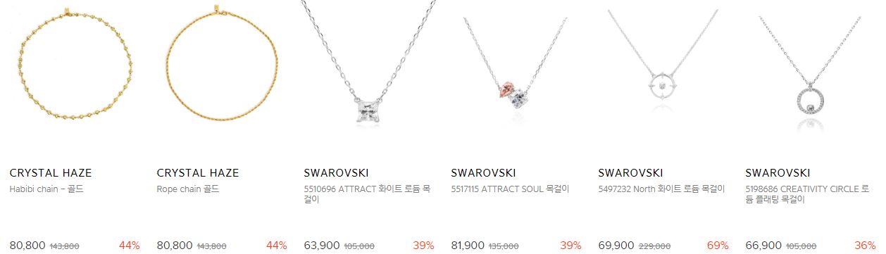 할인 품목 : 목걸이, 귀걸이, 시계 등