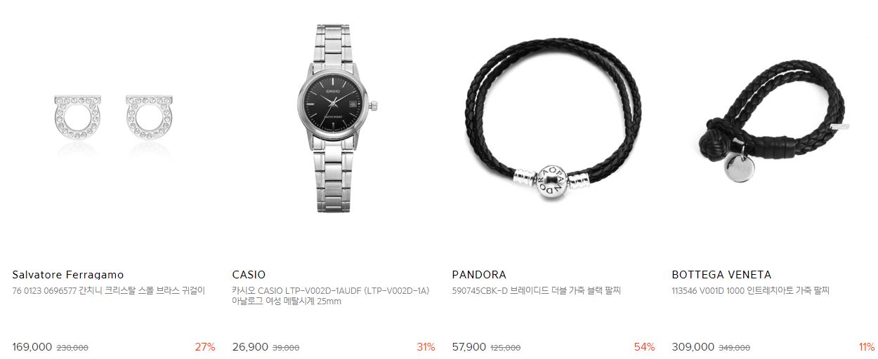 할인 품목 : 목걸이, 귀걸이, 시계 등