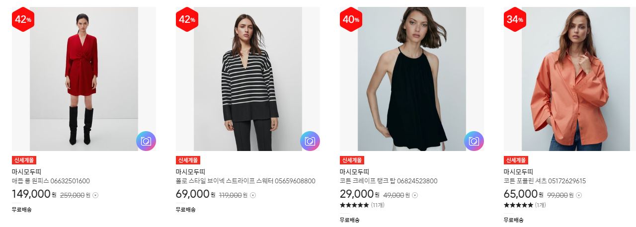 할인 품목 : 셔츠, 티셔츠, 원피스 등
