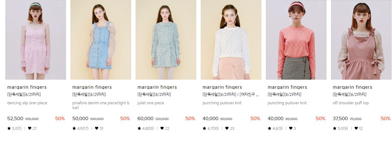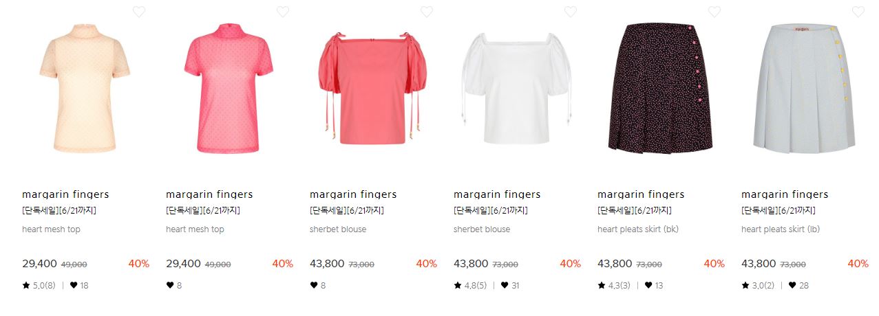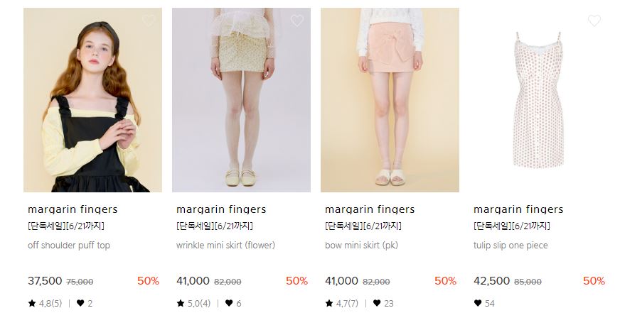 할인 품목 : 원피스, 티셔츠, 스커트 등