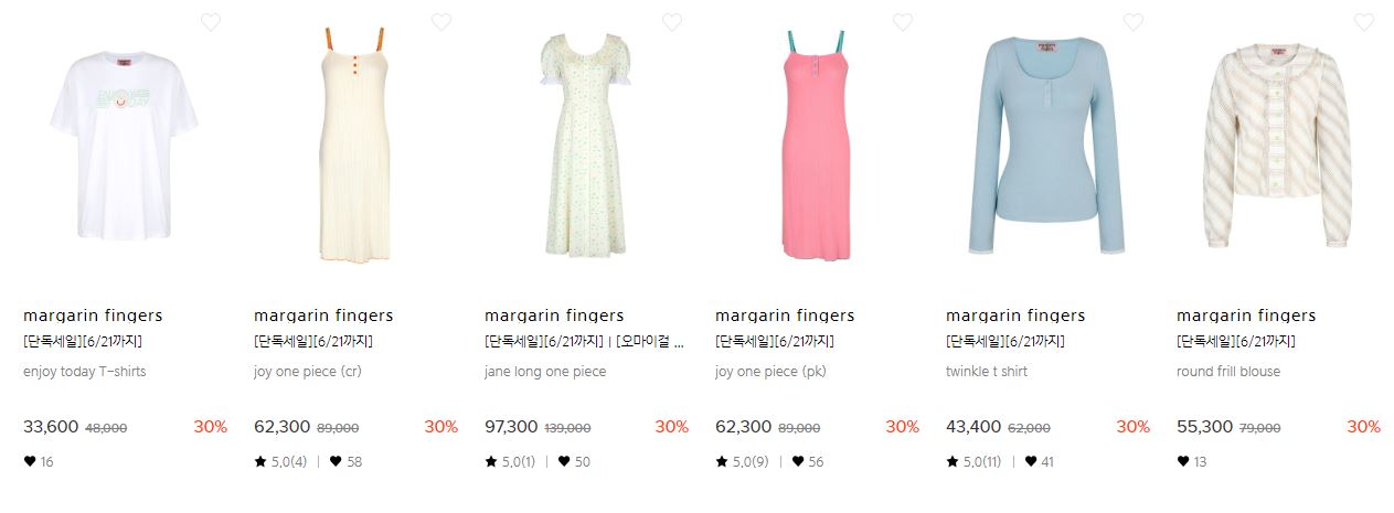 마가린핑거스 다양한 제품을 할인 판매하네요.