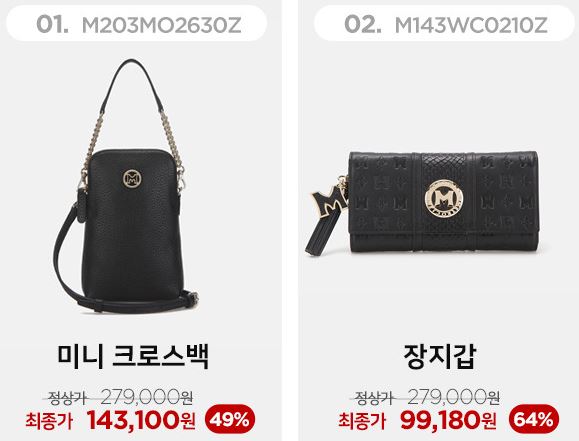 할인 품목 : 지갑, 크로스백, 숄더백 등