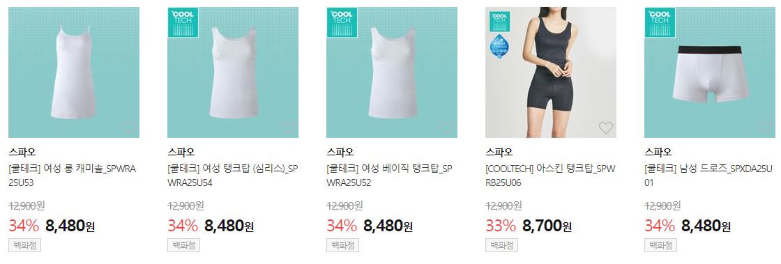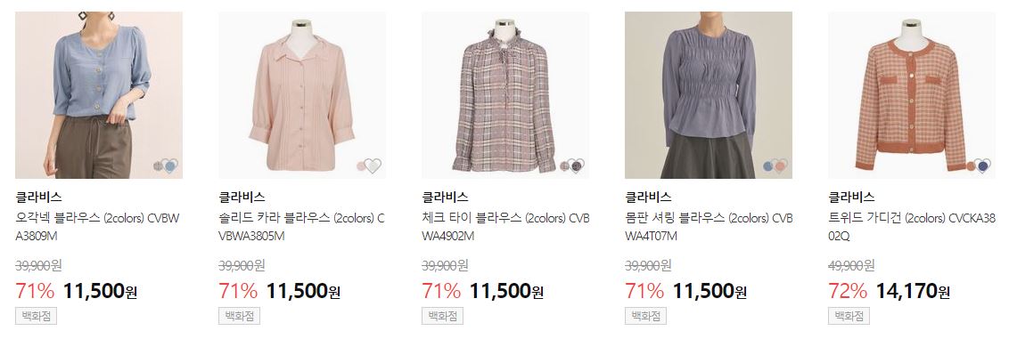 할인 품목 : 티셔츠, 블라우스, 속옷 등